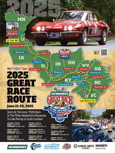 We are proud to announce that we have entered Playboy #92 in the 2025 Great Race. The great race is a speed controlled, timed, endurance race that starts in St. Paul Minnesota and ends in lake Murray, South Carolina. The race starts on Saturday June 21 and ends on Sunday June 29, 2025. We will post updates and information on our progress through the race. This is the first time that a Playboy car has been entered in the race.